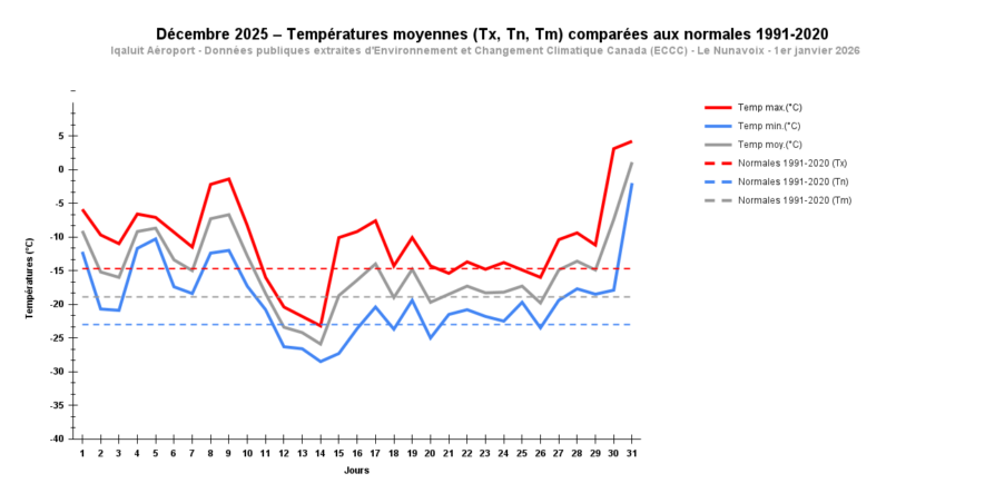 Iqaluit a connu en décembre pas moins de 23 jours au-dessus des normales de saison.