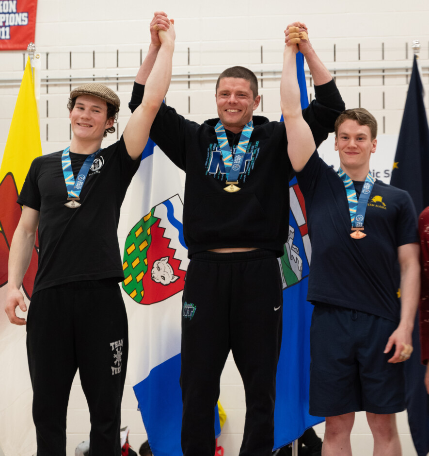 Haydon Robert Chartier (droite) sur le podium des sports arctiques.